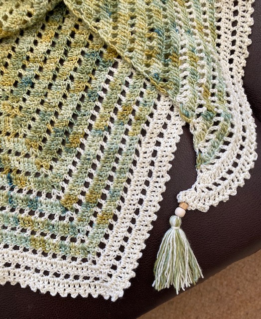 Kreator: Luane Jones Yarn base: Single merino fingering Pattern: Knotty Shawl by Juanita Muir
