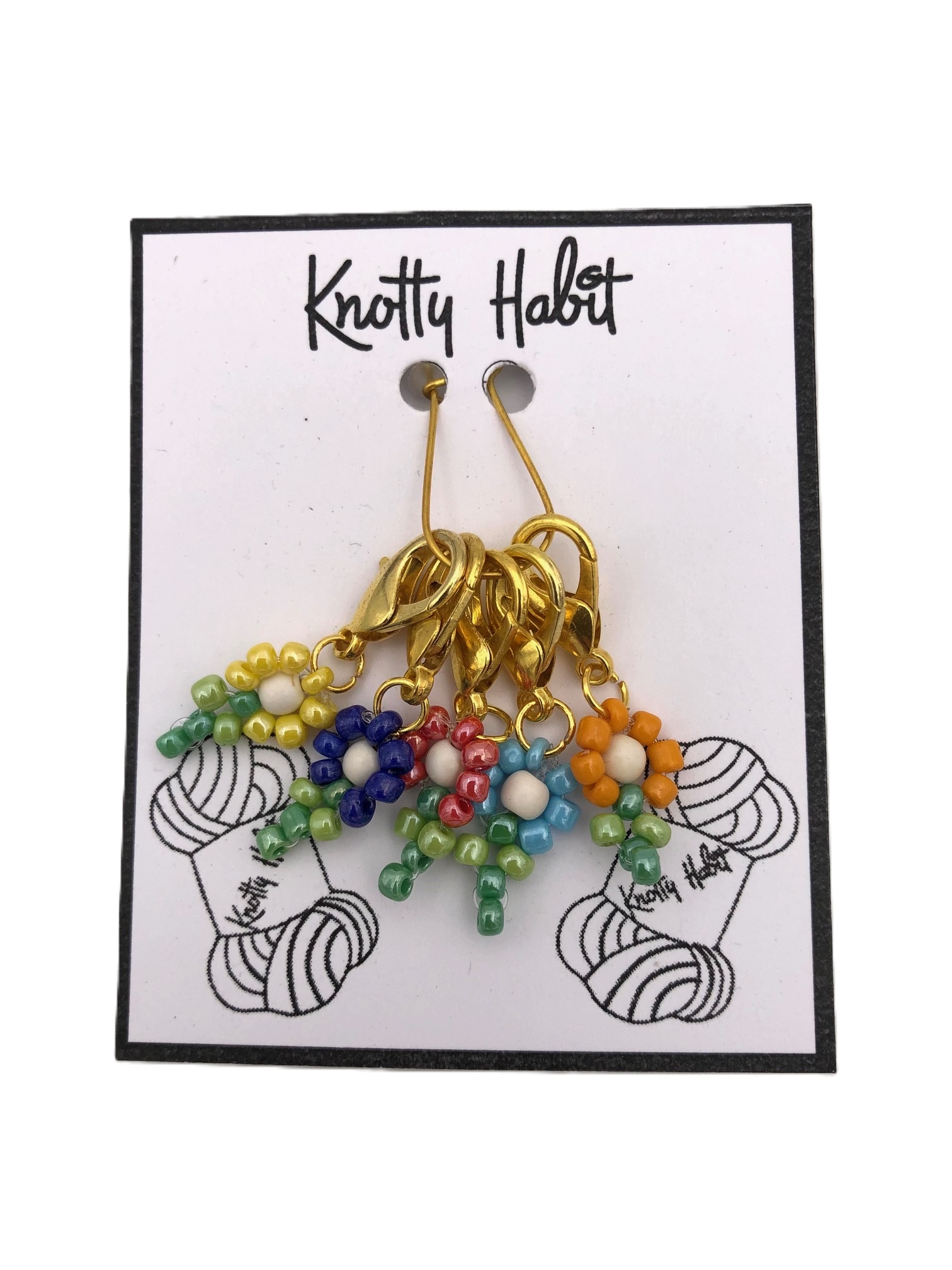 Beaded Flowers – 5 x Stitch Markers (Lobster Claw)