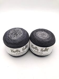 The Knotty Knotts are ±100g Yarn Cakes dyed as a fade consisting of four diffirent shades of the same colour. The colour blend seamlessly form one shade to the next without any knots. The Knotts can be worked from either the outside or inside of the Cake depending on your gradient preference.