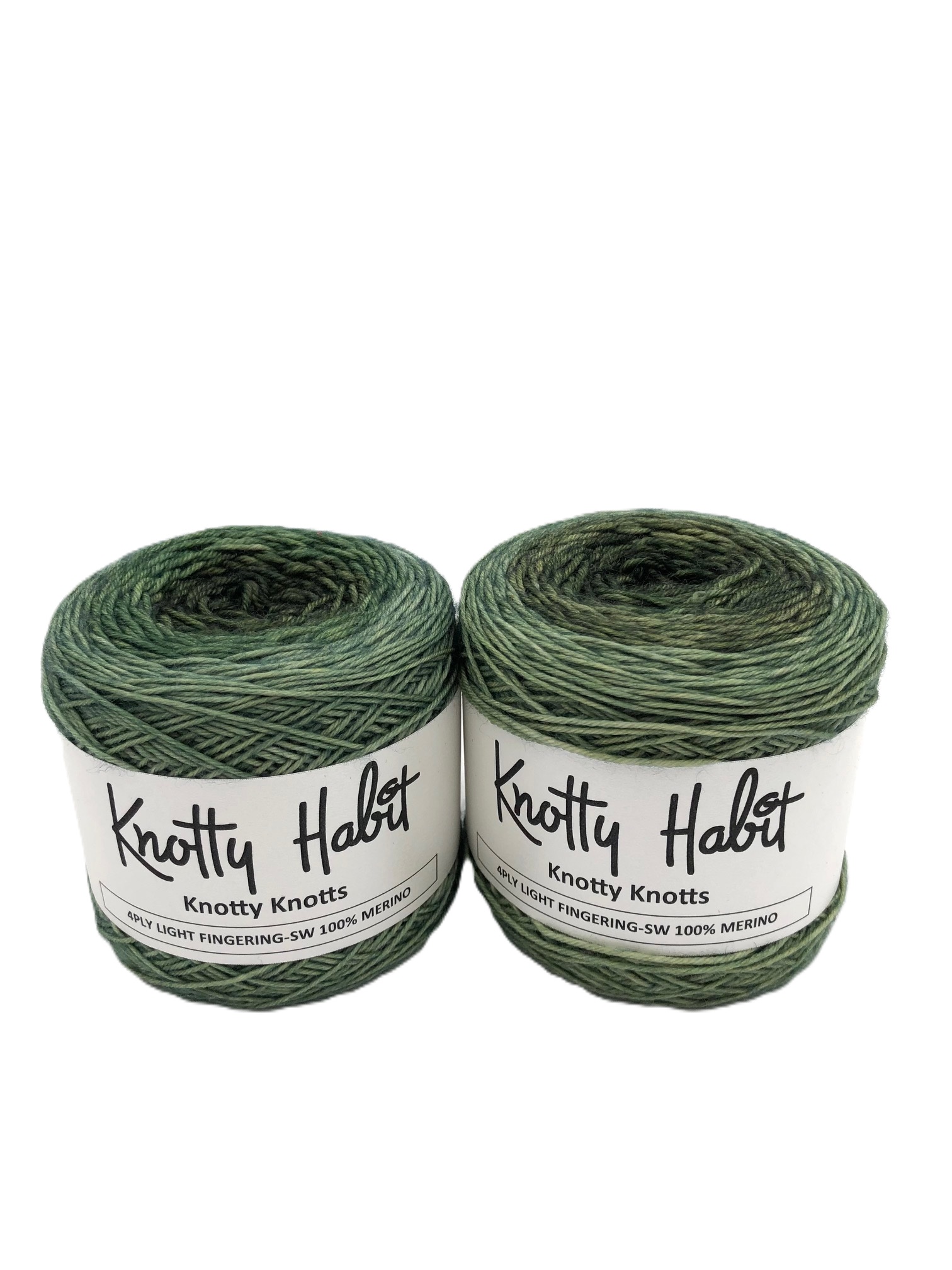 The Knotty Knotts are ±100g Yarn Cakes dyed as a fade consisting of four different shades of the same colour. The colour blend seamlessly form one shade to the next without any knots. The Knotts can be worked from either the outside or inside of the Cake depending on your gradient preference.